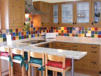 Room/Kitchen with multi-fuel stove and bar counter for dining